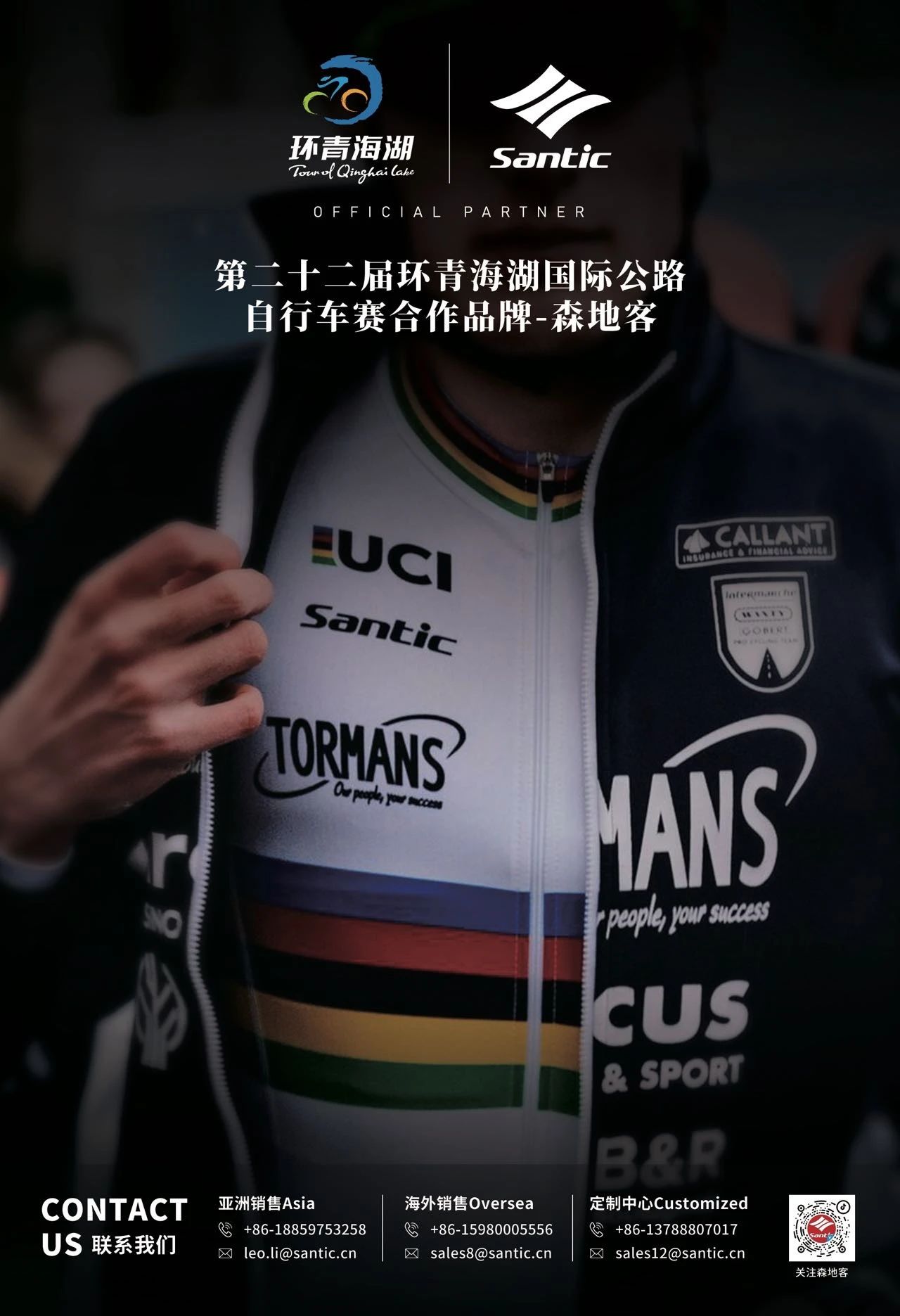 Santic森地客系森地客集团旗下自主品牌,旨在为全球骑行爱好者提供专业、适穿、科技、时尚的骑行装备,销售遍及全球的60多个国家;并以雄厚的实力,成为环广西公路自行车世界巡回赛,环青海湖国际公路自行车赛、环太湖国际公路自行车赛唯一指定骑行服品牌,驰名中国市场。