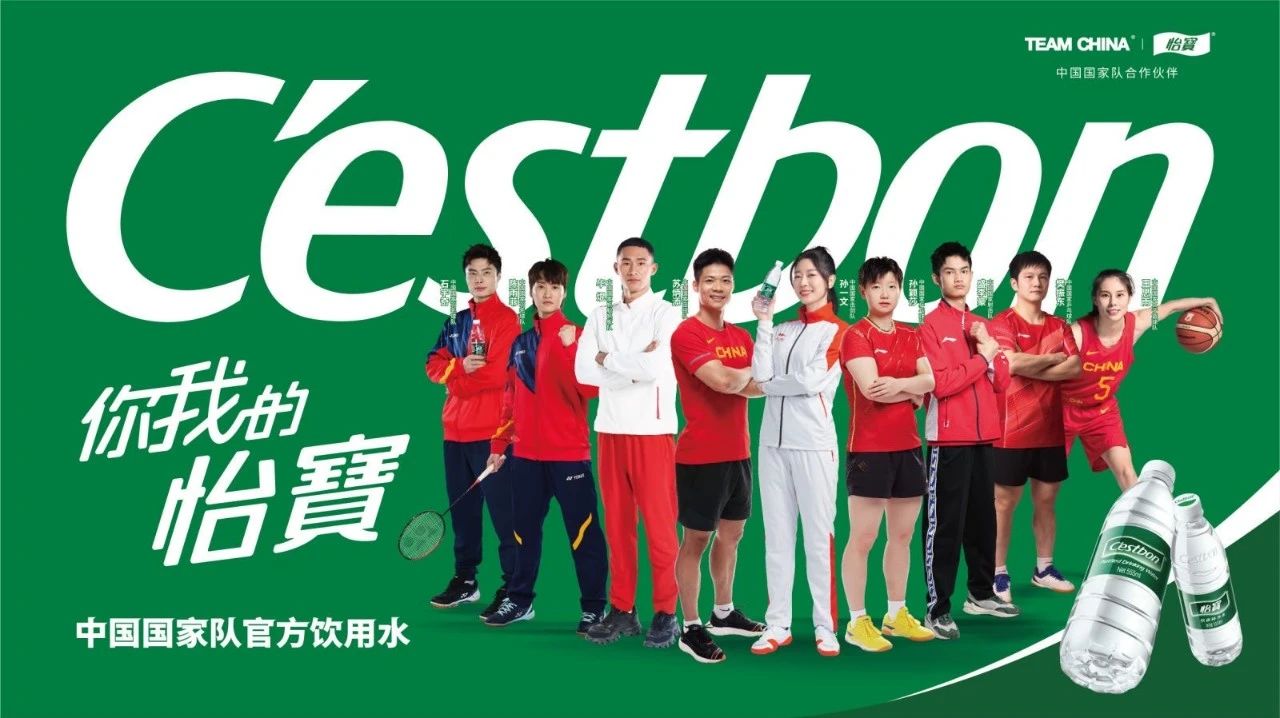 2019年11月,怡宝成为中国国家队TEAM CHINA合作伙伴,国家队运动员的选择,为中国国家排球队、中国国家游泳队、中国国家羽毛球队、中国国家足球队、中国国家短道速滑队等70余支国家运动队提供安全纯净的饮用水服务。